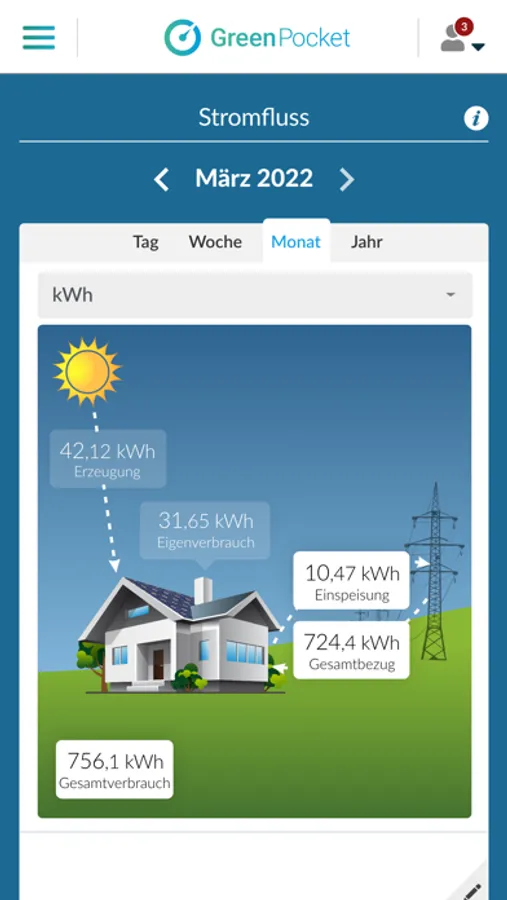 - Den aktuellen Energiekreislauf des Haushaltes immer im Blick mit dem Erzeugungs-Dashboard