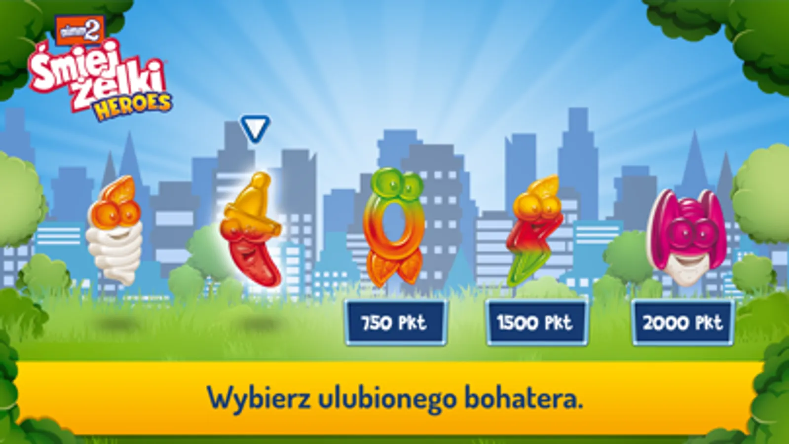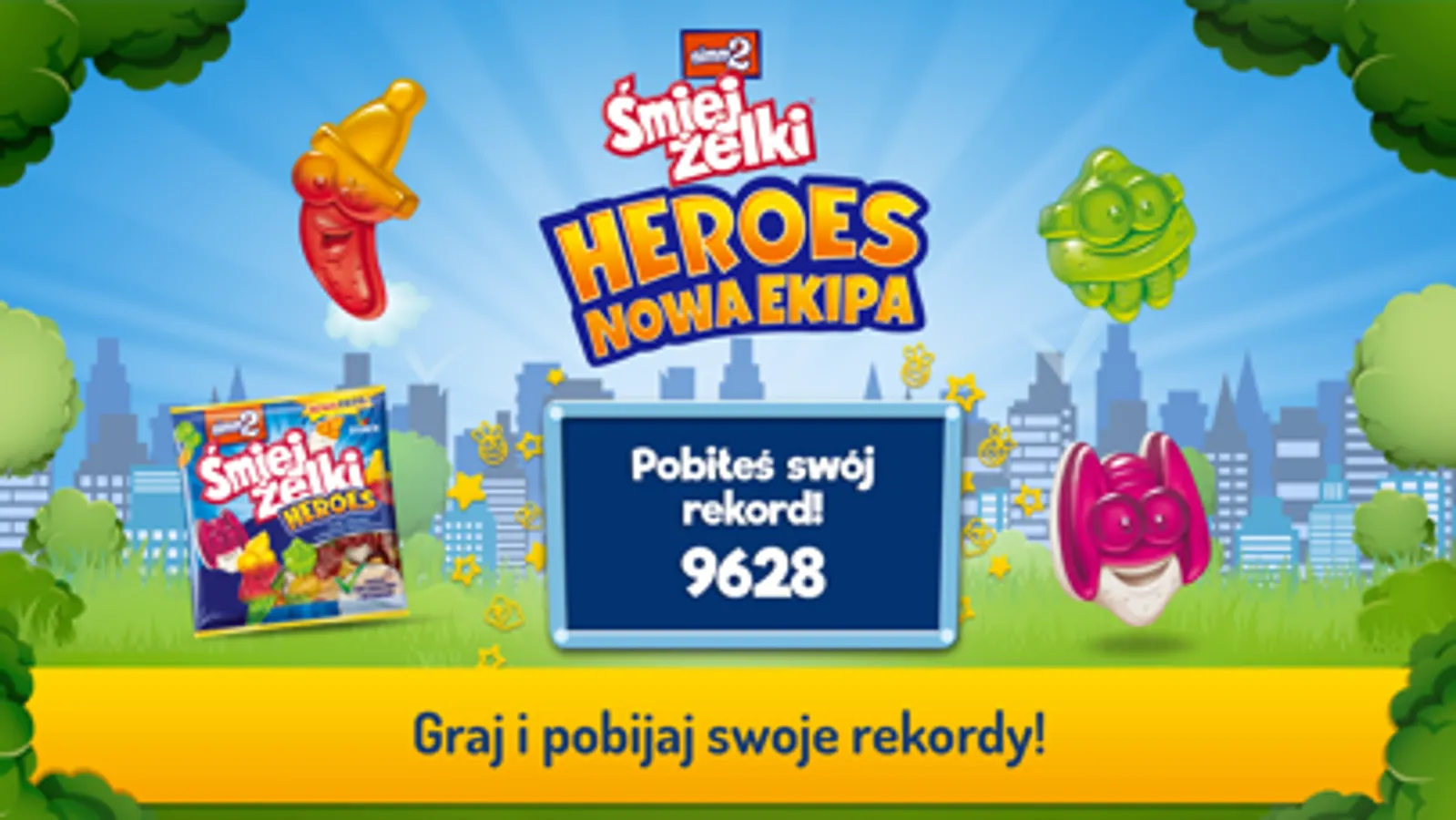 Wybierz ulubionego Śmiejżelka Heroes i pobijaj kolejne rekordy podskakując i zbierając owocowe żelki i bonusy.