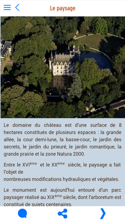 Arpentez le parc paysager du château d’Azay-le-Rideau et plongez dans l’histoire de ce joyau du Val de Loire. A l’aide d’une carte avec géolocalisation, cette application de visite gratuite présente les principes architecturaux du château et du parc, des fiches botaniques sur son arboretum et des anecdotes sur la vie des différents propriétaires. Elle est enrichie de photos et images d’archives.