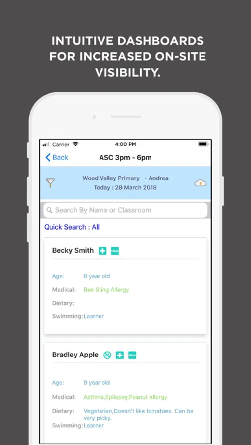 - View a Daily Summary including children attending, notes, medical conditions and allergies.