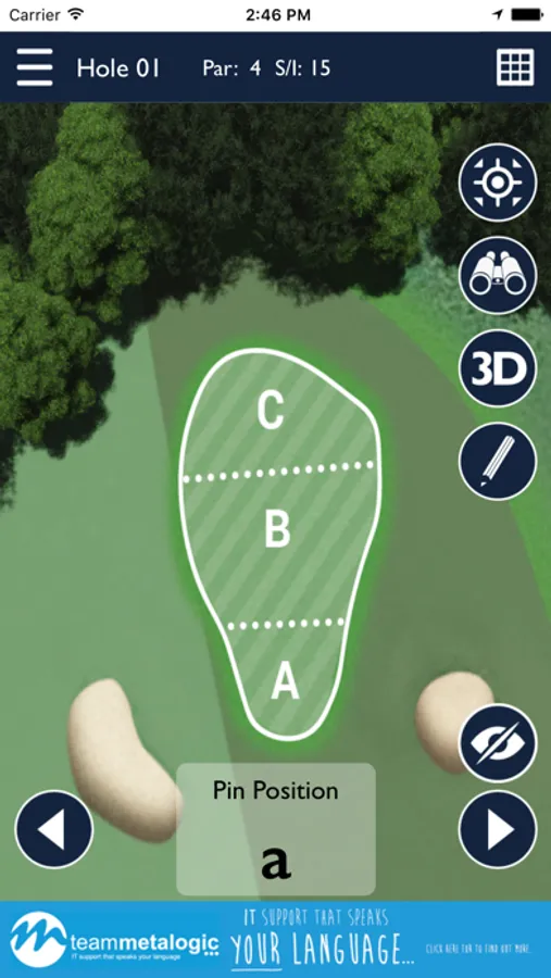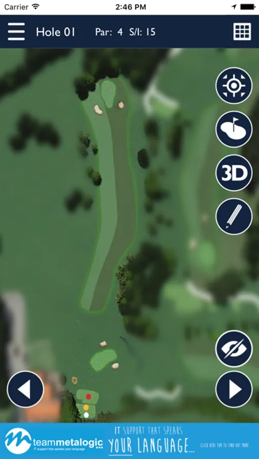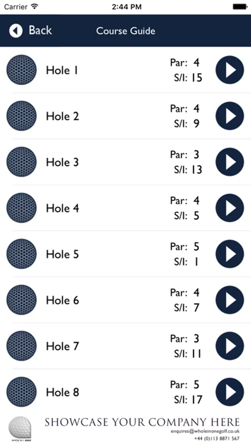 The app features the Whole in One Golf GPS Range Finder and Digital Guide to playing the clubs 18 hole golf course. The App works as an virtual aid, giving you a 3D Flyover of each hole, a pin positioning system.