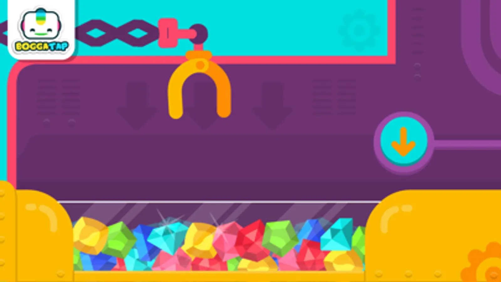 Bokstaver popper ut av en magisk maskin. Lytt til ordet som skal staves, og dra så bokstavene oppå hyller i riktig rekkefølge. Stabler du flere ord, venter det en glitrende skatt i belønning!