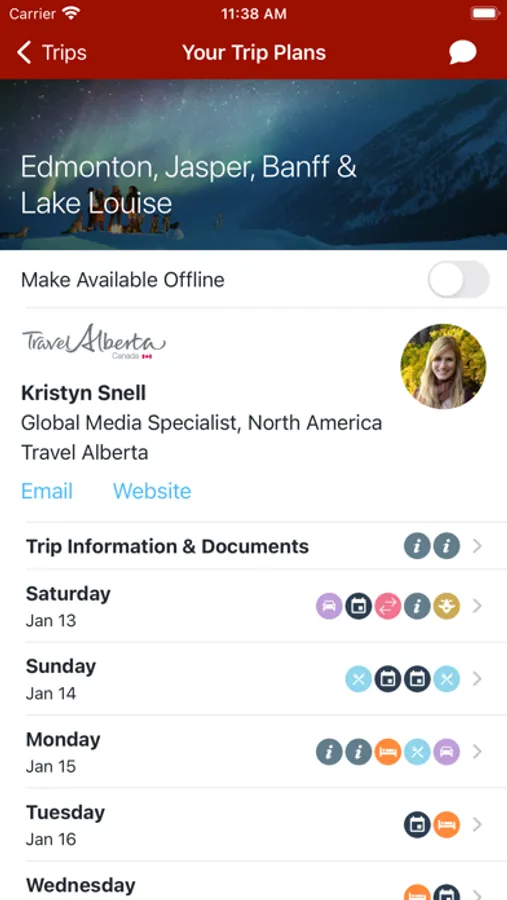 The Travel Alberta app lets you view your itinerary on your phone anytime and anywhere. It’s super easy to use, looks great and makes all of those little trip details easy to find and understand. You don’t even need data or an Internet connection.