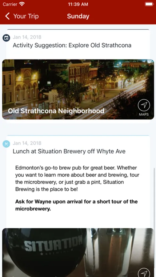 - Quickly pull up information, social handles and navigation for the places on your trip.