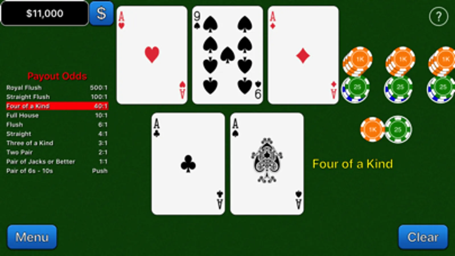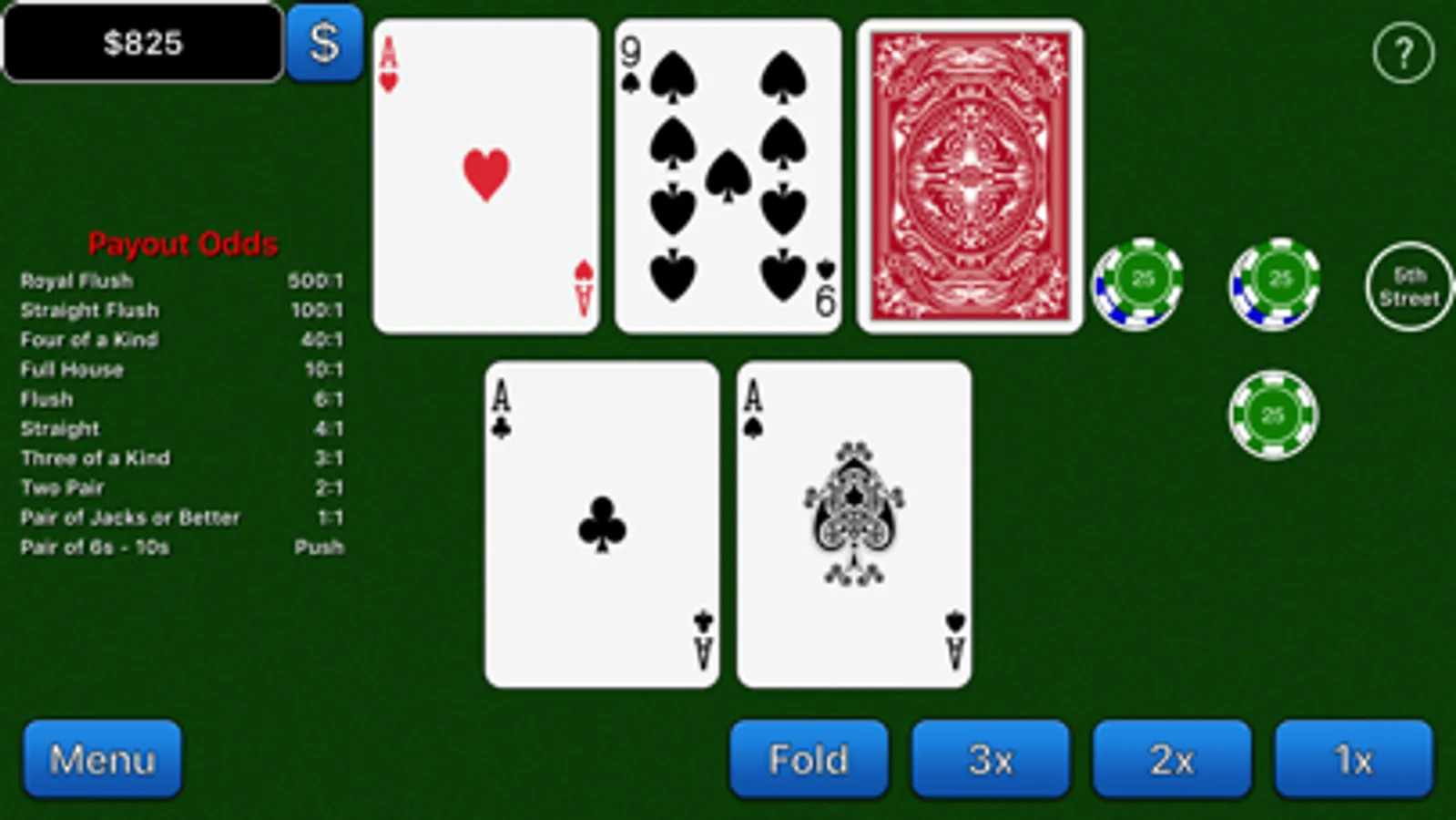Biloxi Stud, favorite game of the South! Simple to play, just create the best five card hand. Win based on your cards alone, leaving you to optimize your betting strategy. With four opportunities to wager, you are in control of whether the hand is a big winner or a major bust.