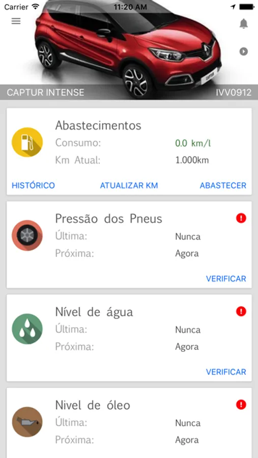 Você poderá ser lembrado regularmente sobre verificação do Nível de Óleo, Calibração Pneus e Nivel de agua. O App armazena a última verificação, e avisará a data de próxima verificação, mantendo seu veículo sempre em dia com os itens básicos de manutenção.