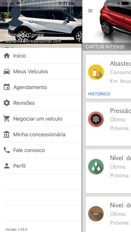 Através do APP, você poderá visualizar as revisões que foram feitas na Regence Renault, bem como, ser notificado sobre as próximas revisões, previstas para seus veículos cadastrados.