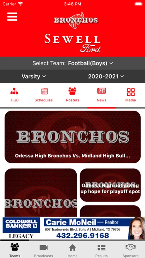Content is managed by the Odessa Bronchos Athletics Department with help of high school students gaining valuable access to emerging and mobile technologies.