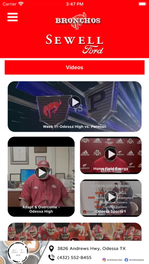 - Supporters: Special Thanks to local boosters and supporters of Odessa Bronchos Athletics with a directory including website and in-app calling.