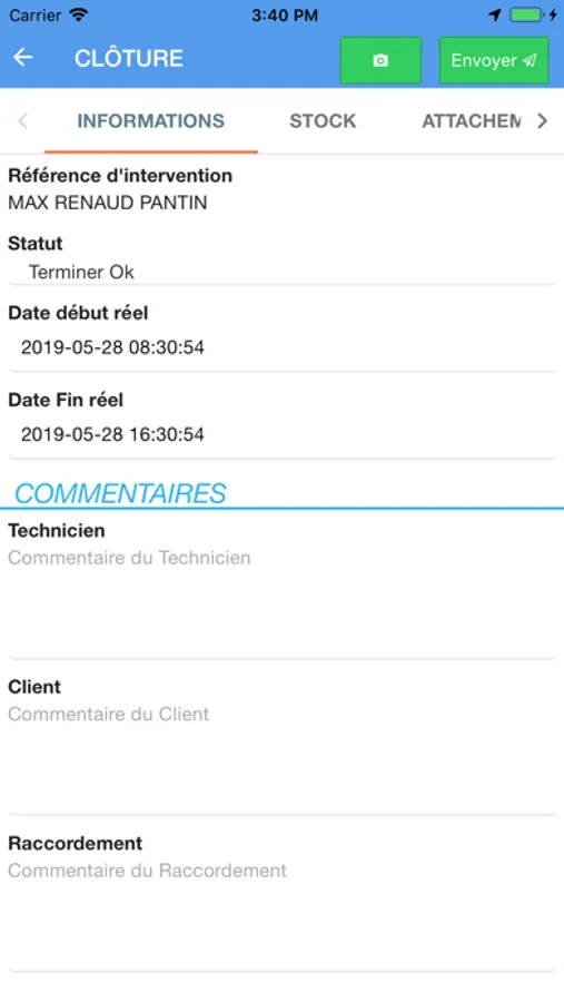 Facilitez le travail de vos intervenants en leur permettant d’ajouter des commentaires, photos, données GPS, signature client, et toutes les données relatives à chaque intervention en un seul dossier accessible à tout moment.