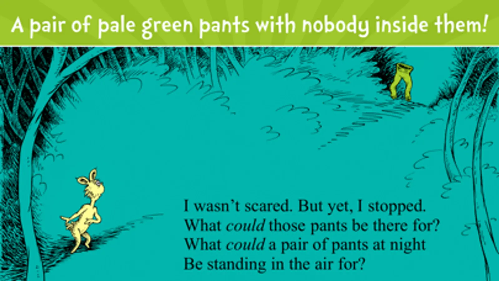 The Dr. Seuss classic “What Was I Scared Of?” comes to life with playful interactivity, delightful animations and fun activities!