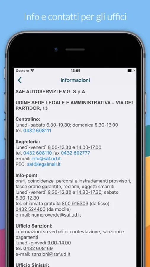 ● Possibilità di contattare i vari uffici e autoservizi SAF
