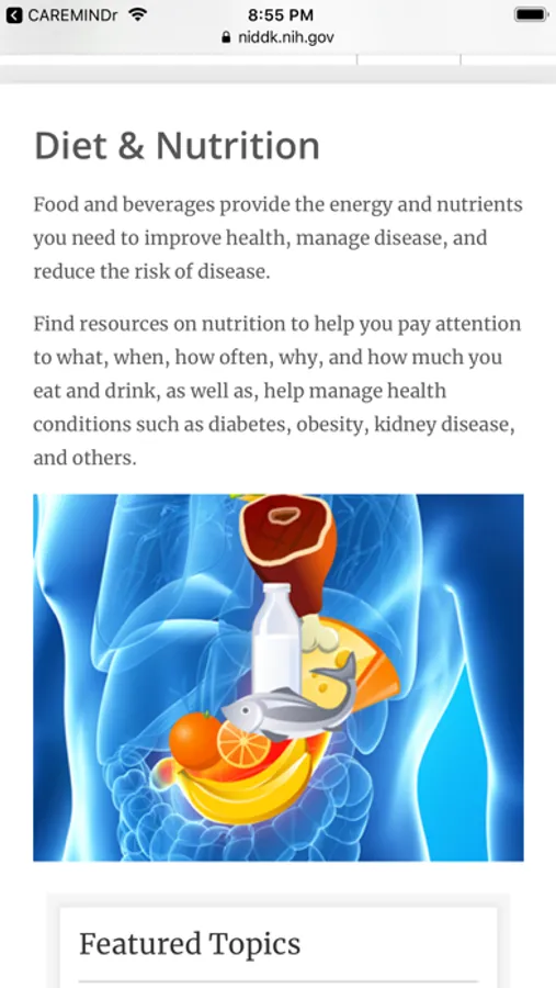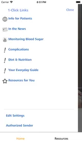 CAREMINDr also provides 1-click access, using smart phones and tablets, to the online resources that patients and their families need to more fully participate in the programs and support resources offered by their healthcare insurer and/or provider. As directed by the patient's organization, the app provides links to specific pages inside the organization’s website, such as specialty programs for Pregnancy, Men's / Women's Health, and Drug Information. Links may also be made to external sites, particularly those affiliated programs which offer specialized care, such as Smoking Cessation, Weight Management, or Dealing with Depression.