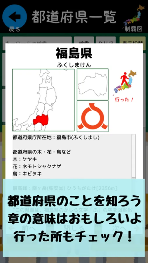 データがたくさん!都道府県名をタップして説明を見れるよ。