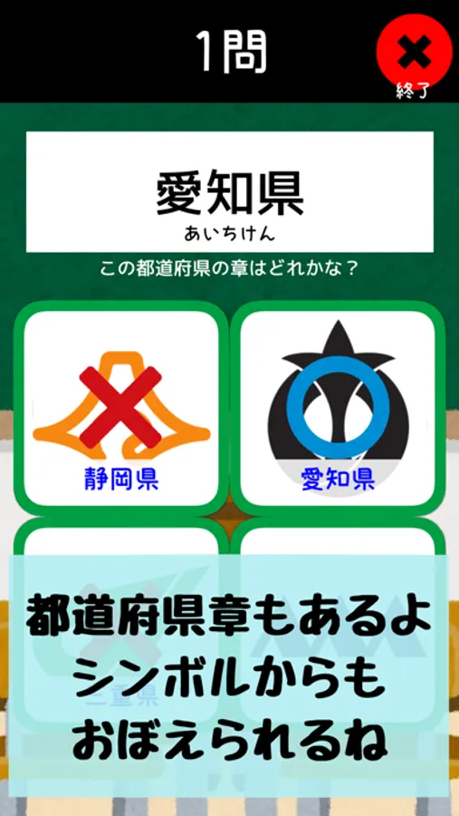 日本地図での都道府県の位置や形、都道府県章など雑学としても勉強になるよ。