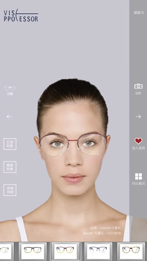 这款软件可以将虚拟的眼镜模型佩戴在用户眼部,并在屏幕上动态展示出来。用户可以随意调整头部姿势,观察不同角度下佩戴虚拟眼镜后的呈现效果,并可以将喜欢的镜框添加至自己的选择单中。