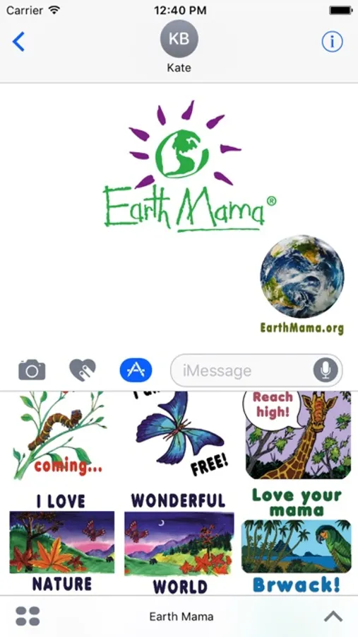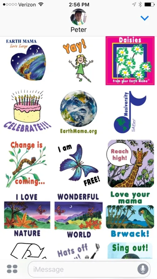 Share the joy of green living with your iPhone and iPad text messages! With more than two dozen stickers to celebrate, cheer on, express thanks, encourage recycling and brighten someone’s day, you can add color and fun to your conversations. Musical images and silly photos of Earth Mama® music character remind friends of the power of music to make the world a better place. See www.earthmama.org for songs and resources.