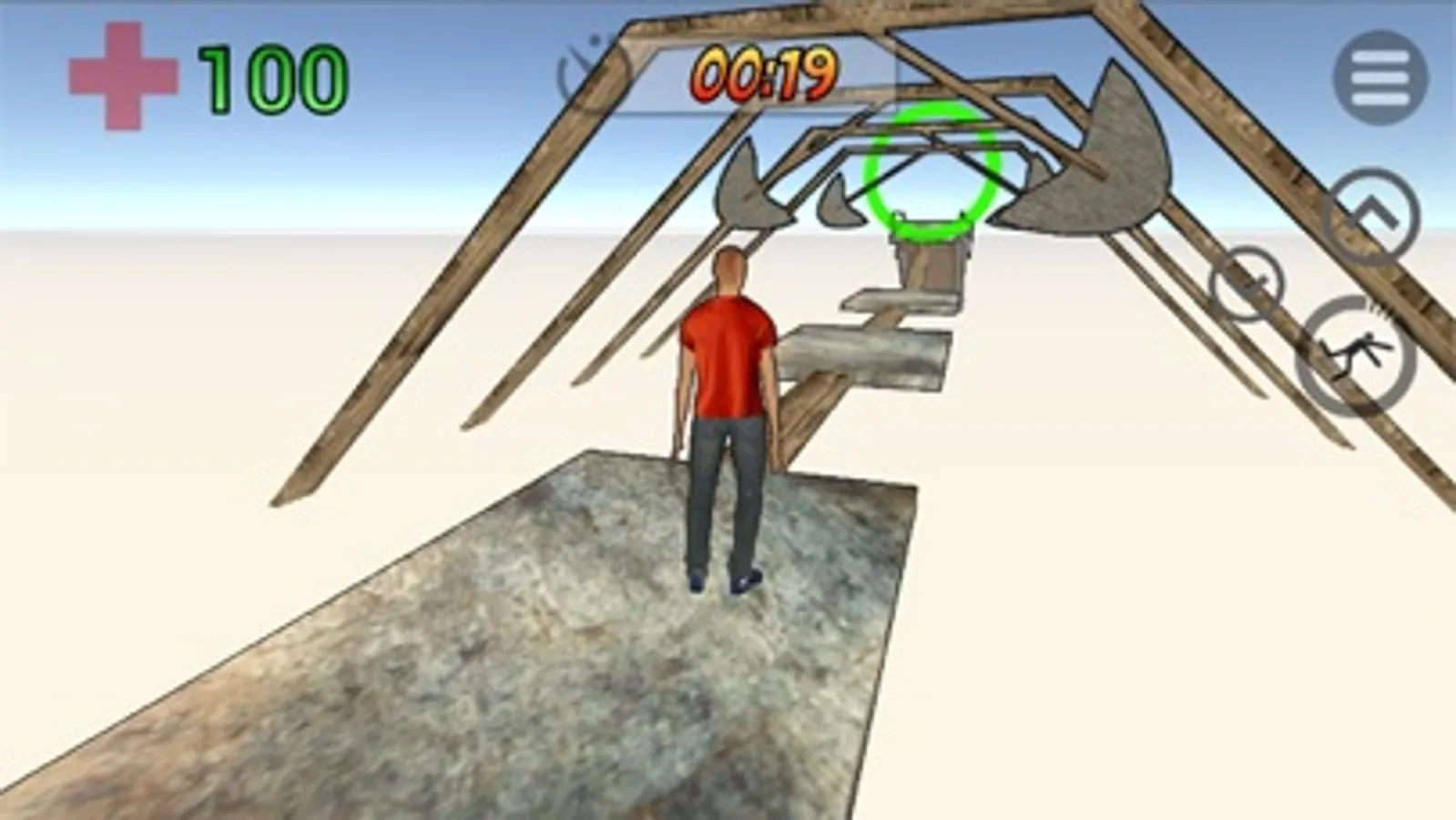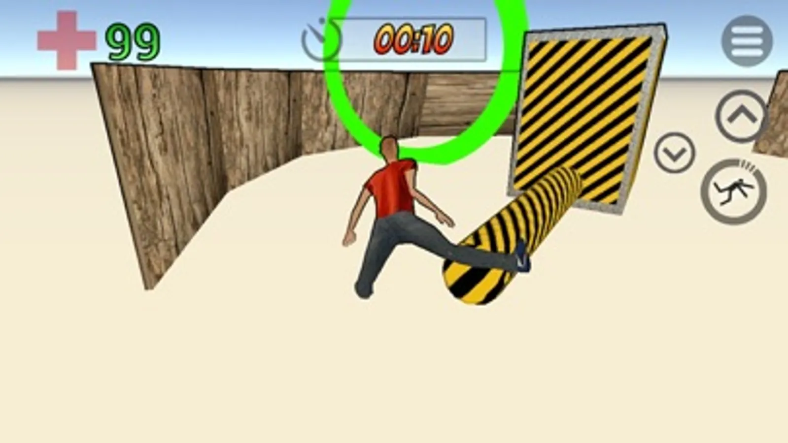 There are two joysticks on both side of the screen in the game. The left one controls your movement, while the right joystick controls your camera. On the right side there are another three buttons. The up arrow makes you jump, the down arrow makes you crouch and the tripping icon makes you fall or get up.
