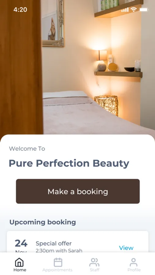The Pure Perfection Beauty app makes booking your appointments and managing your loyalty points even easier. You're just a few taps away from feeling good and looking great!