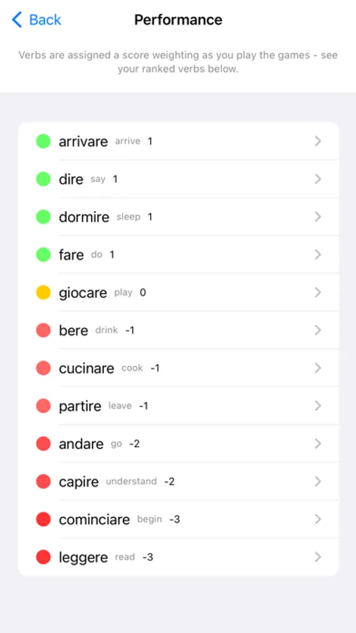 The app will track your scores throughout the games, so you can check in the Performance section at any time to see the entries you're finding trickiest.
