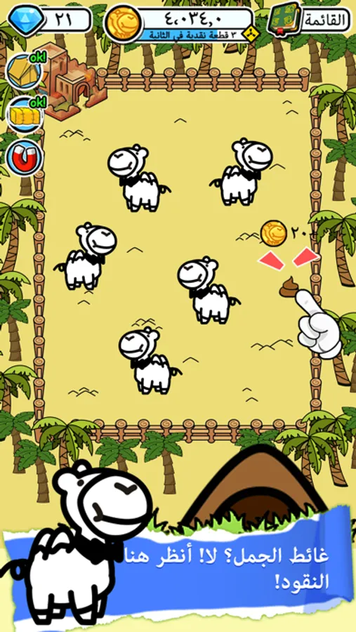 لا تنسى النقر على الجمل لتزيد عملاتك الذهبية