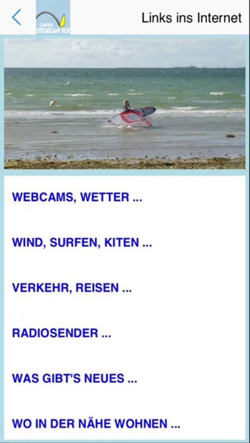 Die "Strukkamphuk App" für die Bereiche des Campingplatz Strukkamphuk auf Fehmarn in der Ostsee sowie die Küste weiter über Gold, Westerbergen bis nach Lemkenhafen ist besonders gedacht für alle Wassersportler (insbesondere Segler, Kiter und Windsurfer) aber auch sehr hilfreich für "Nicht-Wassersportler" unter den Urlaubern und Anwohnern und die "Sonnenanbeter". Sie bietet umfangreiche Infos zu Wetter, Wind, Stränden, Surf- und Kite-Spots, dem Campingplatz Strukkamphuk, Veranstaltungen usw. Diese App wird noch weiter entwickelt und wir freuen uns über Anregungen dazu.