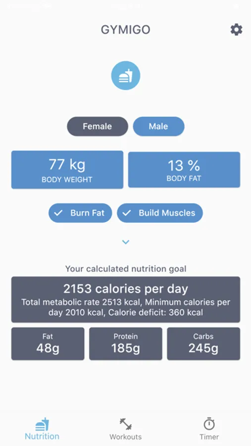 Gymigo determines your nutritional goals and helps you control them. Gymigo helps you to design your diet in such a way that it supports muscle growth and burns excess fat.