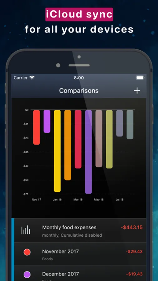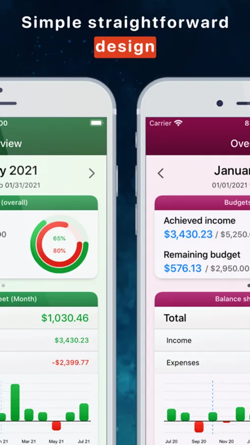 Your privacy is very important to me! I do not ask you for any personal information. And you don't need to register in order to use this app. Your data is only stored on your devices, giving you complete control of all your sensitive information. For additional protection, you can setup access locks which prevents unauthorized users from accessing your financial data.