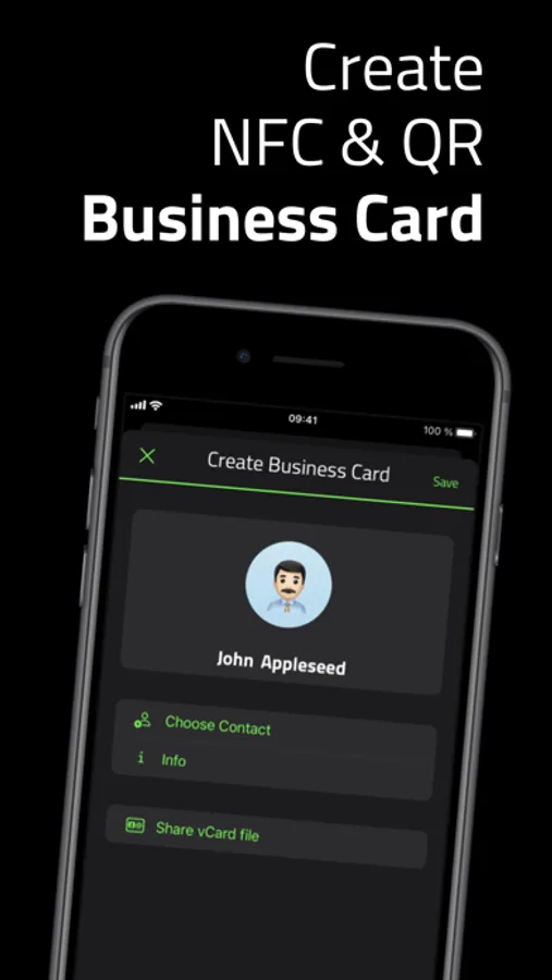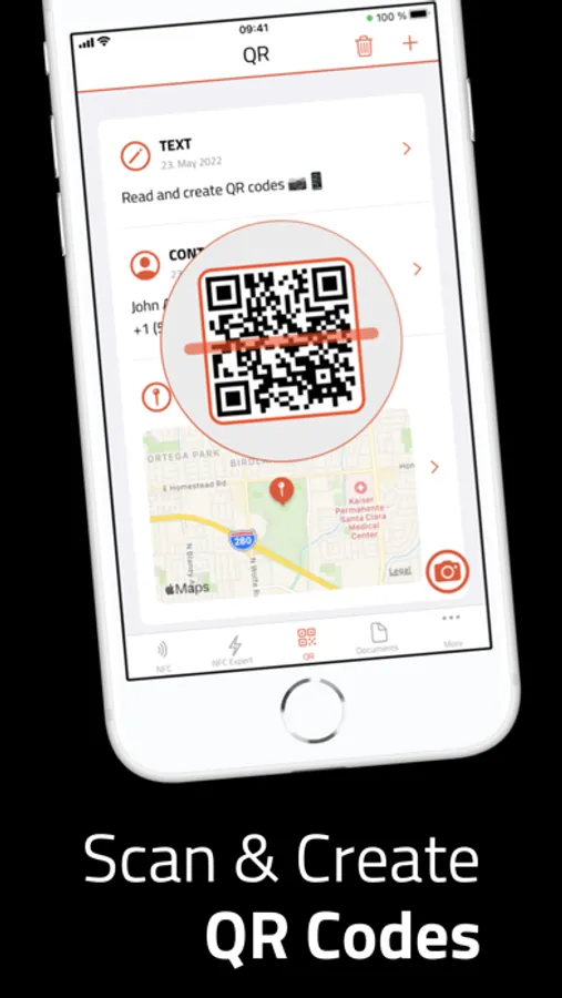 • Business Card, Web Link, Wi-Fi, Shortcut, Location, Text, Phone Number, Communication Apps (FaceTime, WhatsApp, Telegram, Instagram), SMS, Email.