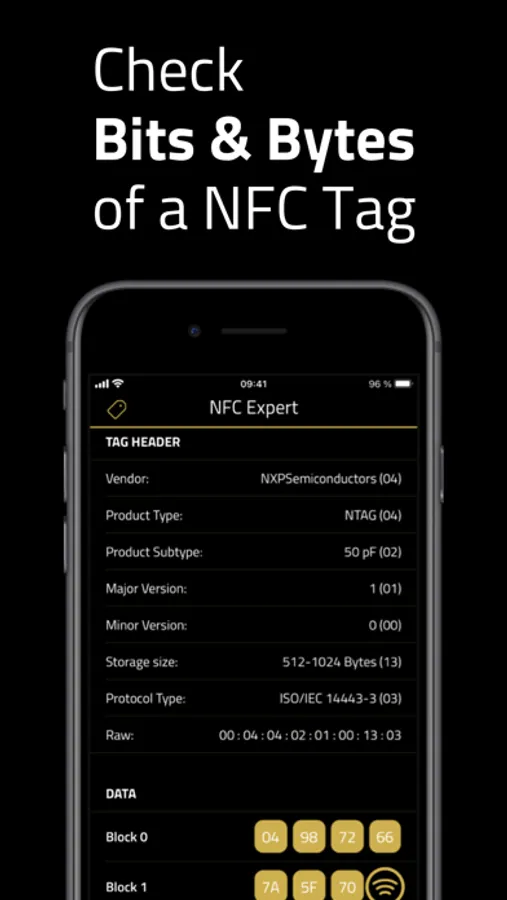 • Expert Mode: NFC memory analysis, full/NDEF formatting, tag locking, password protection, and more.
