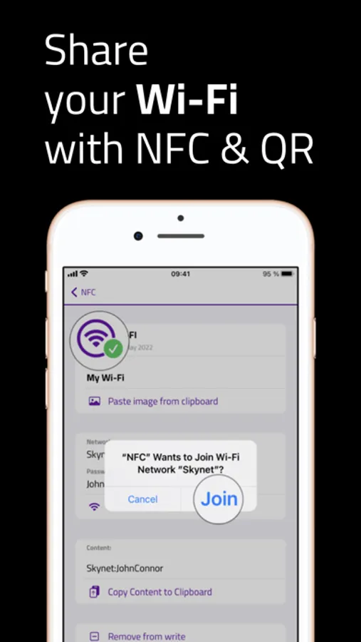 • Manage NFC tags: read, write, format, lock, password protect, modify.