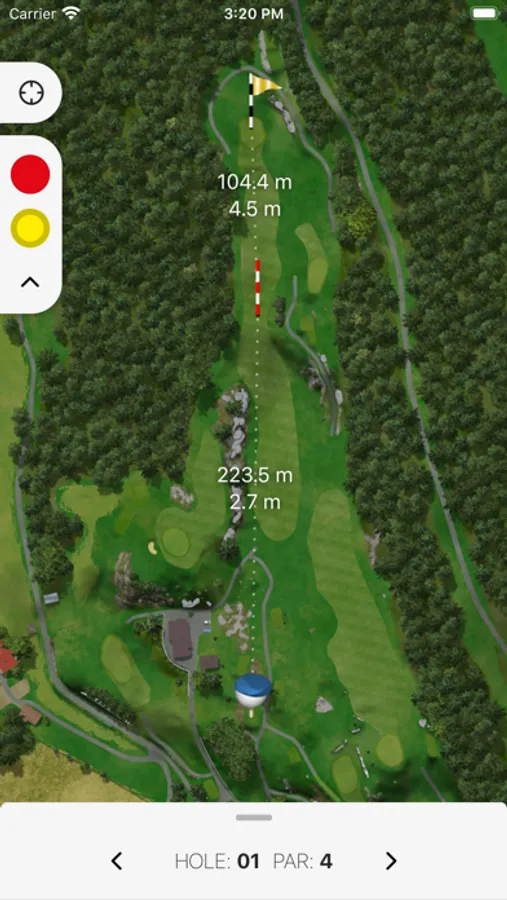 Blick an die Richtung von Ihrem aktuellen Standort zum Golfplatz mit dem Routenplaner.