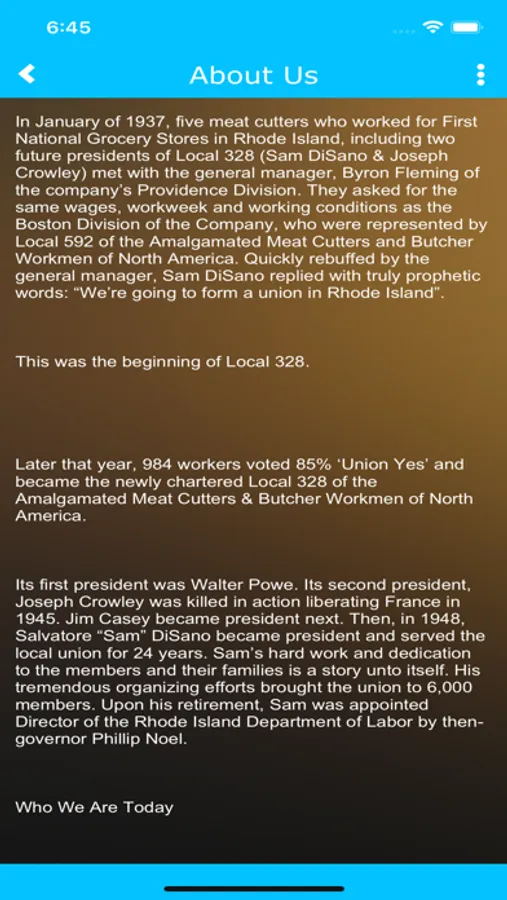 This app is for members of UFCW Local 328. With this app you'll be able to view your union contract, news, upcoming events, member discounts, our website, photos and social media. We will also send out push notifications to keep you updated on the happenings of the Local, negotiation updates, nearby events and more.