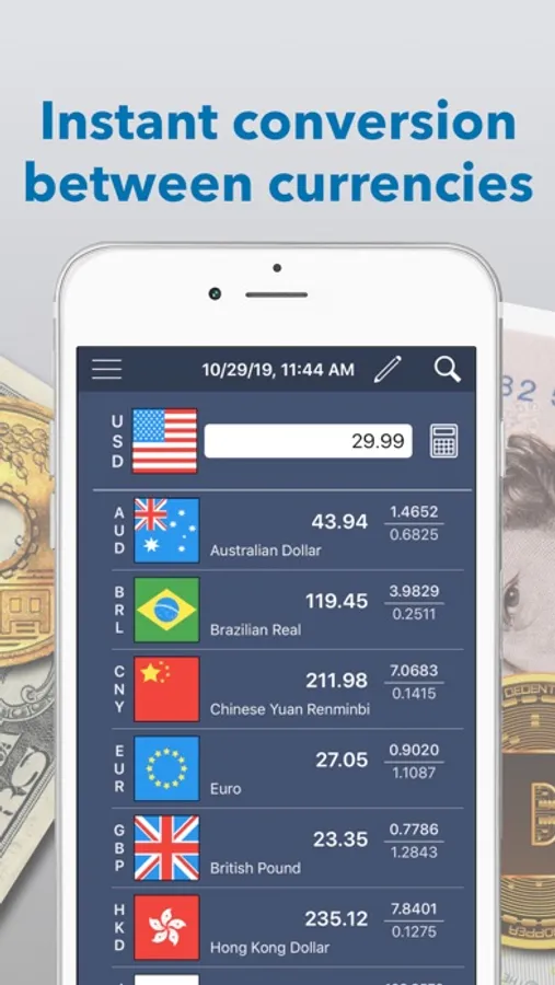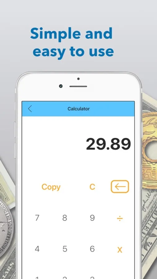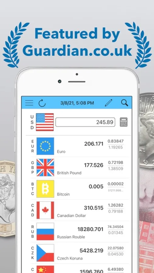 Splitting the bill? Investing in forex? Use the currency calculator button on the main screen.