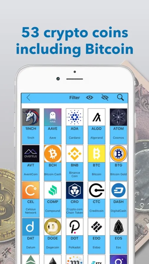 - Crypto Compare API with the crypto currencies such as Bitcoin, Ethereum, Litecoin, Monero, Ripple and more...