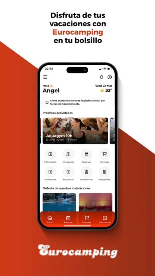 Con nuestra App tendrás el camping en el bolsillo. Tras registrar tu estancia y elegir tu idioma, obtendrás acceso a todas las actividades, servicios y productos del complejo desde un único sitio, a través del cual podrás efectuar reservas y pagos de forma sencilla. Además, podrás solicitar labores de mantenimiento, notificar incidencias y valorar aquellos servicios o actividades en las que hayas participado. Para vivir la experiencia completa del camping, ¡descárgate nuestra App!