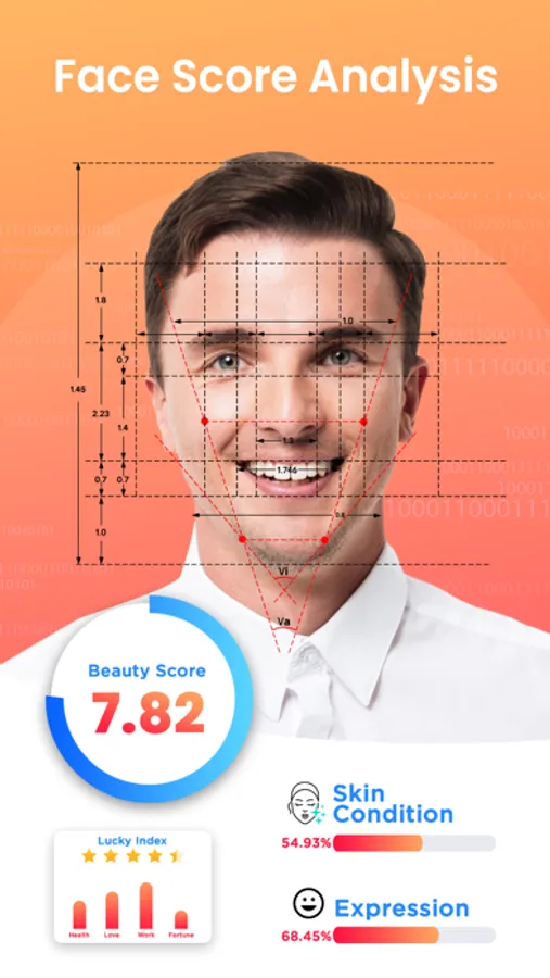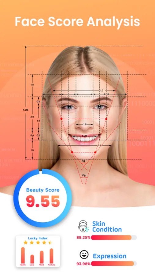 Unlock the beauty hidden in your face and golden ratio face analysis with this FREE face scanner app. Beauty Scanner - Face Analyzer utilizes state-of-the-art technology to provide you with insights into your beauty, your personality, your love, your health, your wealth, your ethnicity, etc. Whether you're curious about your facial symmetry, entertaining with friends, or seeking personalized beauty tips, this face analyzer app has you covered!