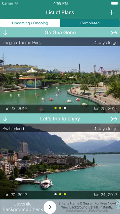 - Travel plan details can be viewed with destination image, date of travel and remaining time.