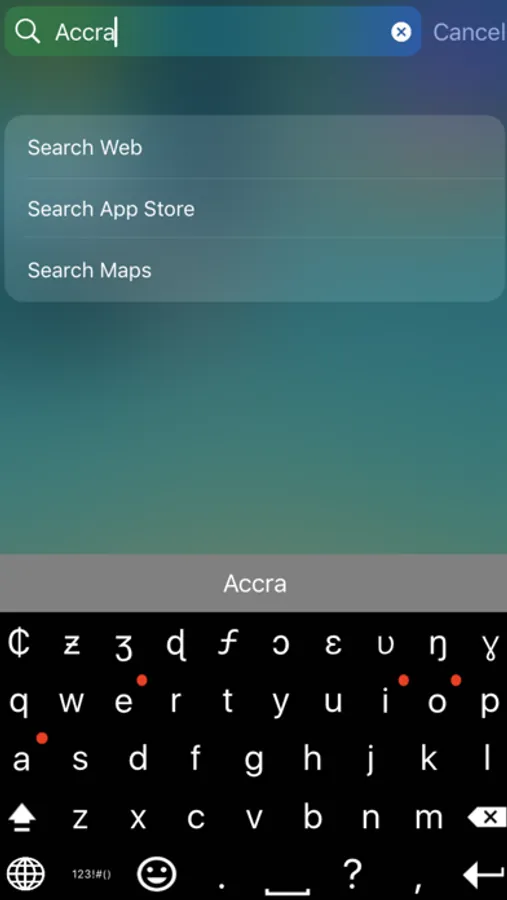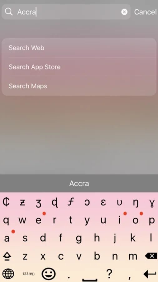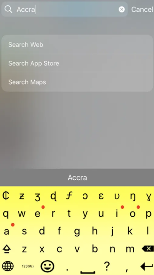 - Red dots on the keyboard mark letters under which there are more characters