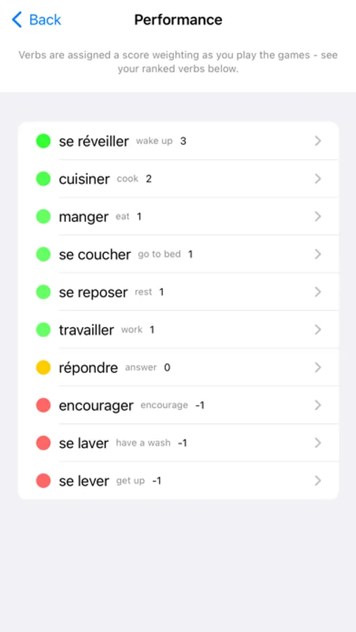 The app will track your scores throughout the games, so you can check in the Performance section at any time to see the entries you're finding trickiest.
