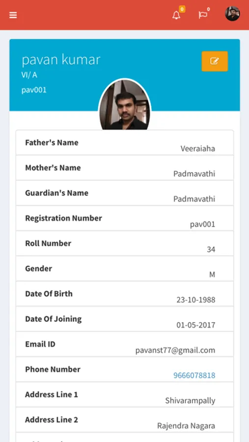 8. Notification inbox which houses all the messages received by teachers or School administration.