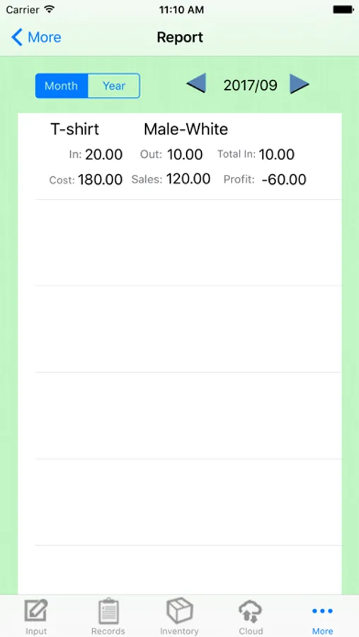 -”Report” screen: Show quantities of Buy-in / Sell-out whole month or year.