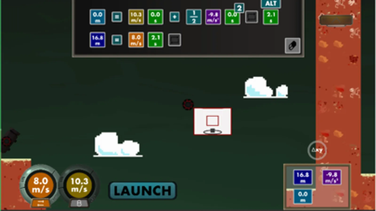 -Explore free fall and projectiles by solving for unknowns in order to make goals and predict time of flight.