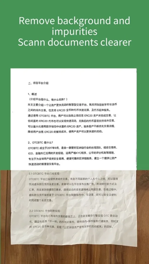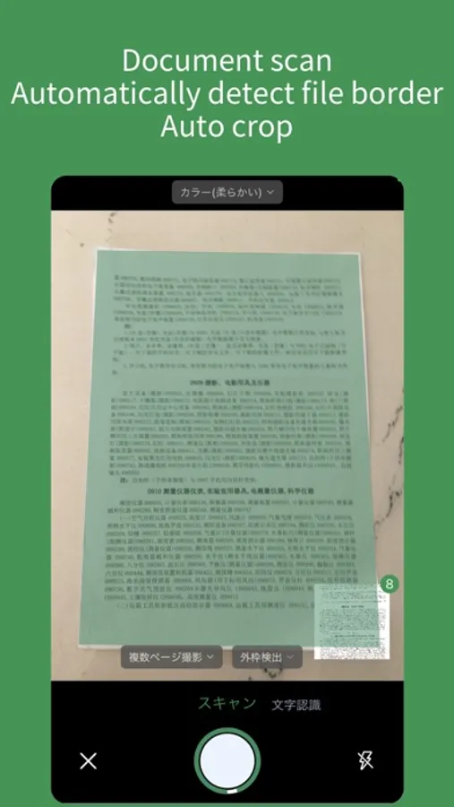 将摄像头对准文档,即可自动识别边界并拍出扫描件,多种文档色彩可供选择。