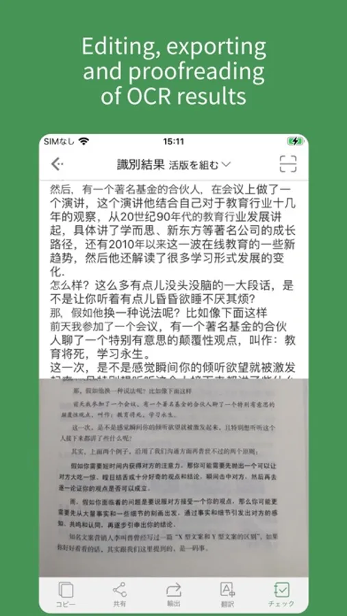 - Edit OCR results and notes of the doc, exporting as .txt file and .docx file.