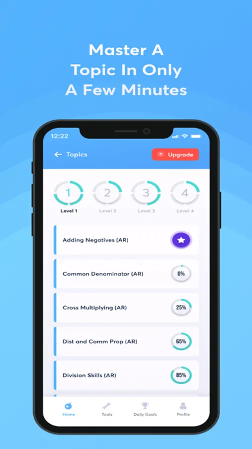 You can set customizable Daily Goals to stay motivated in your preparation for the ASVAB exam. There are three types of Daily Goals: time spent answering ASVAB practice questions, correct answers, and topics mastered per day. Daily Goals that have been hit will be recognized at the end of that round.