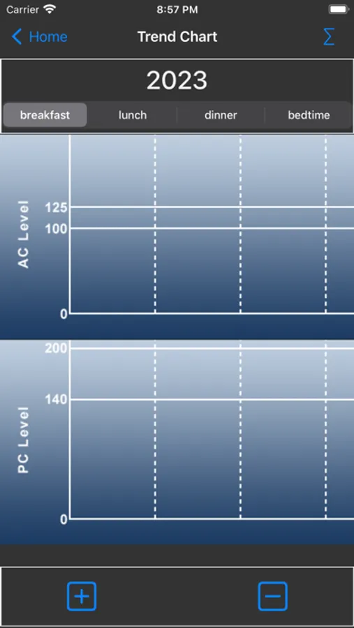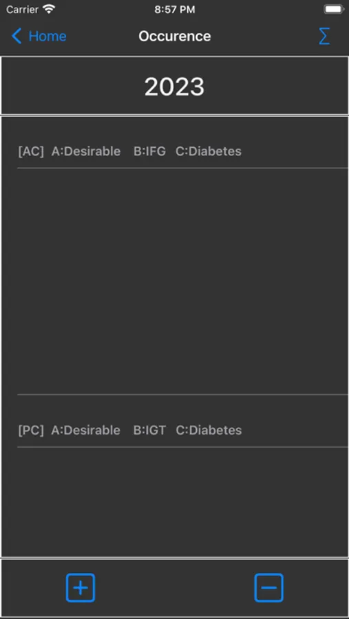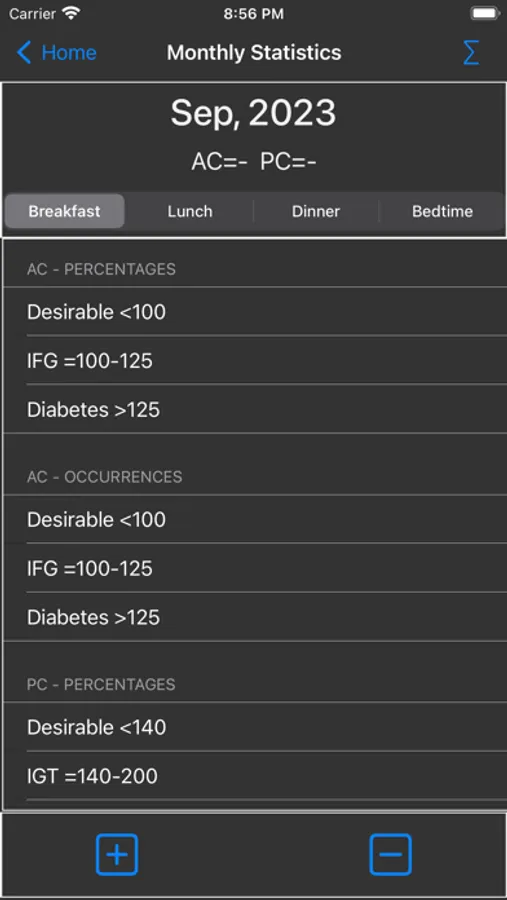 The iBG plus is also a blood glucose log application. Browsing the data from notebooks in a time-consuming and labor-extensive manner is no longer required. There are 3 numerical ranges to measure with an empty stomach before meal: desirable lower than 100, IFG between 100-125, and diabetes higher than 125. There are 3 numerical ranges to measure with an two hours after a meal: desirable lower than 140, IGT between 140-200, and diabetes higher than 200. Blood sugar data maintenance: addition, correction, and deletion of blood sugar data are available. In addition, you can also record any notes about how you are feeling or other important information. The statistics of AC and PC occurrences, percentages, and occurrence trends from January to December is made available.