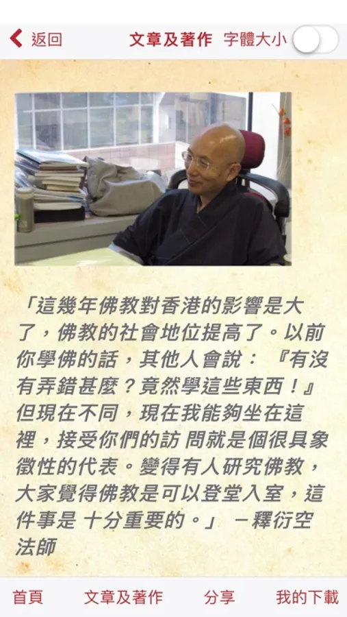 “關懷你的心”的 App. 主要收藏了衍空法師歷年了的佛學開示和講座。這些粵語開示和講座可分為四大類:禪修開示、公開講座、電台開示和其他。
