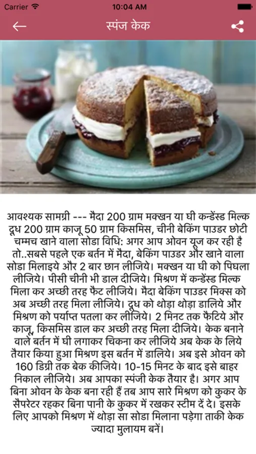 Cake Recipe Application has various recipe of the Cake in the Hindi Language. Vagitarian people need the eggless cake but many cakes come with egg in Cake.All People can make & enjoy Tasty Cake Recipe step by step by using this Cake Recipes application.