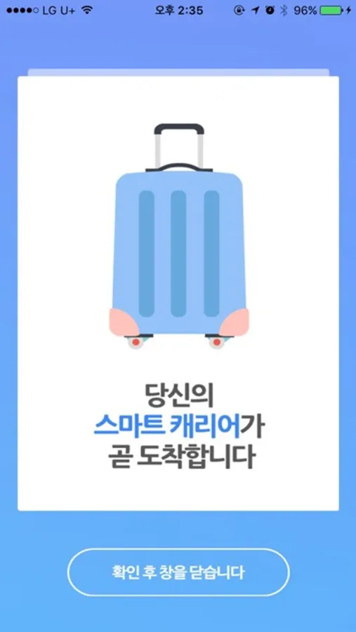 2. 앱에서 제품을 등록하시고 캐리어에 스마트그램 제품을 휴대하시면 수화물 수취대에서 제품의 신호를 받아 캐리어 도착 알림을 제공합니다.